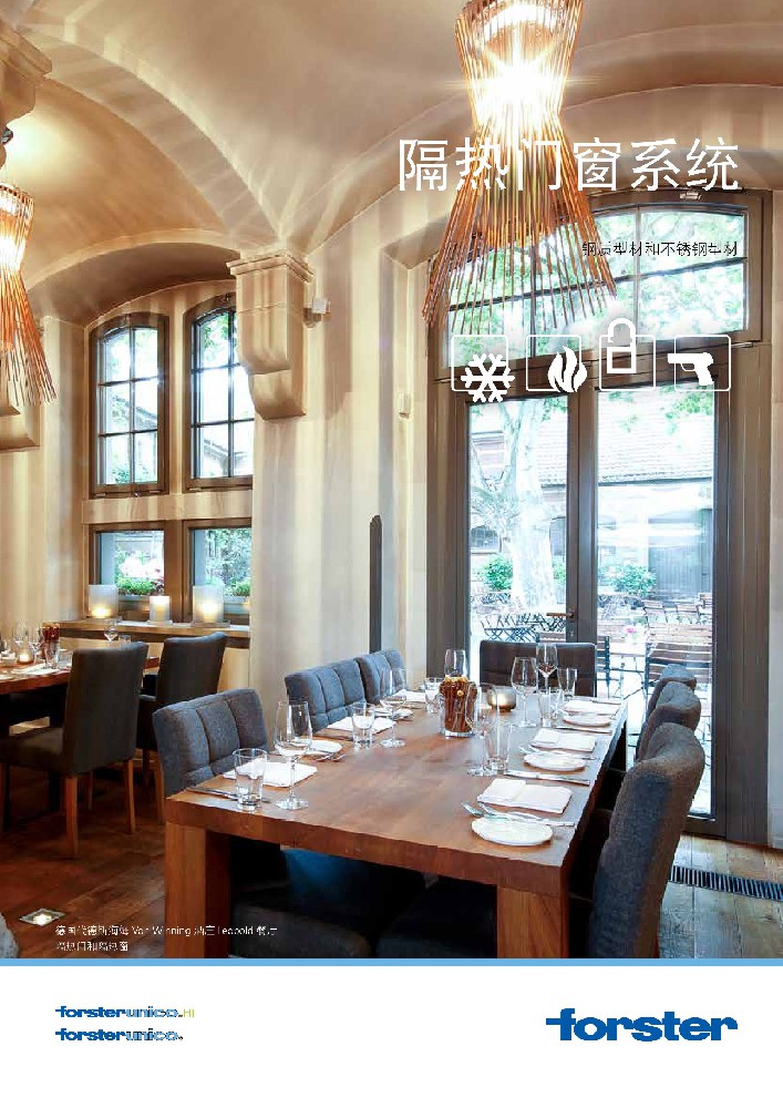 forster unico 作为革命性的隔热型材系统,适用于单扇和双扇的室外门 窗和固定窗。型材由100%可循环利用的钢材加工成形,未包含任何人工合成的隔热材料,相比传统隔热型材的性 能更胜一筹。创新的隔热形式,以其独特的型材几何结构和隔热复合方式,增强了型材的物理性能和结构强度, 满足了建筑应用中的苛刻需求。